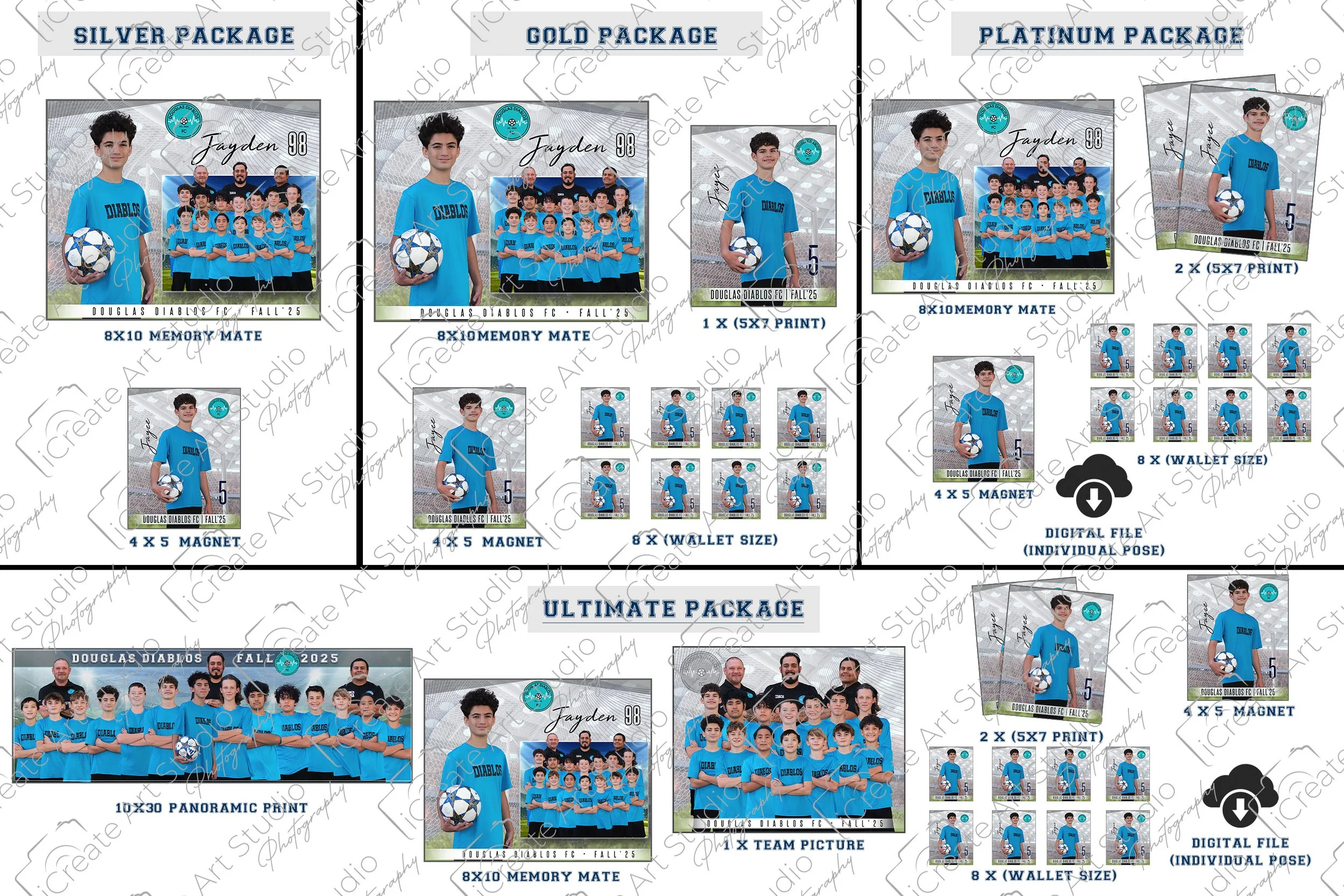 • 10x30 Panoramic Print • Memory Mate (8x10) • Team Picture (8x10) 4x5 Magnet • (2) 5 x 7 Print• (8) Wallet Prints • Digital File (Individual Pose)